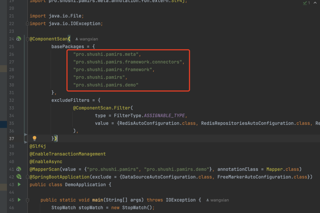 3. The @ComponentScan.basePackages annotation in the startup class (a Spring-built annotation) must include the paths of all dependent modules.