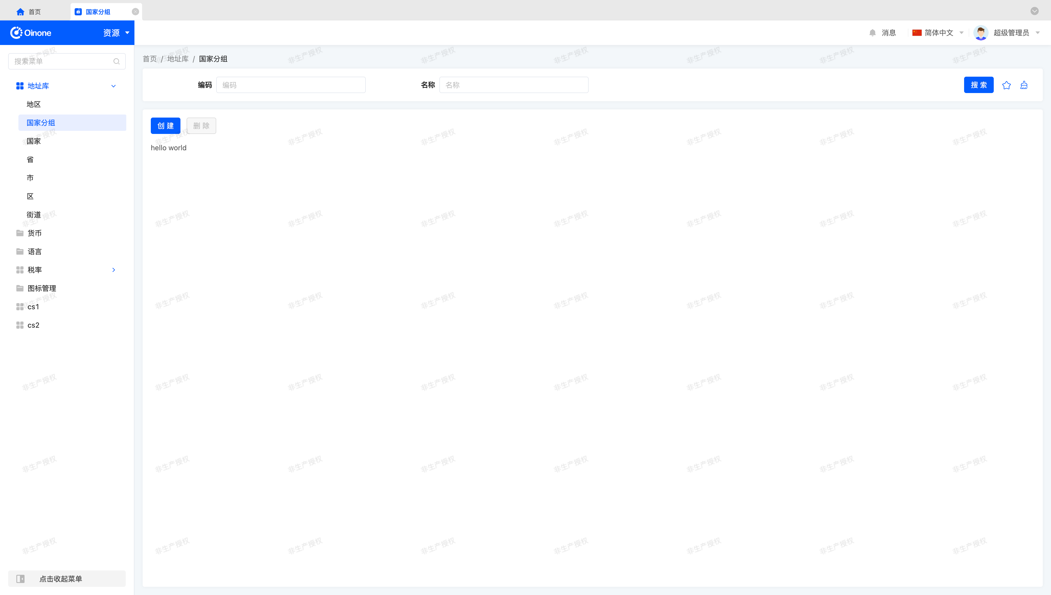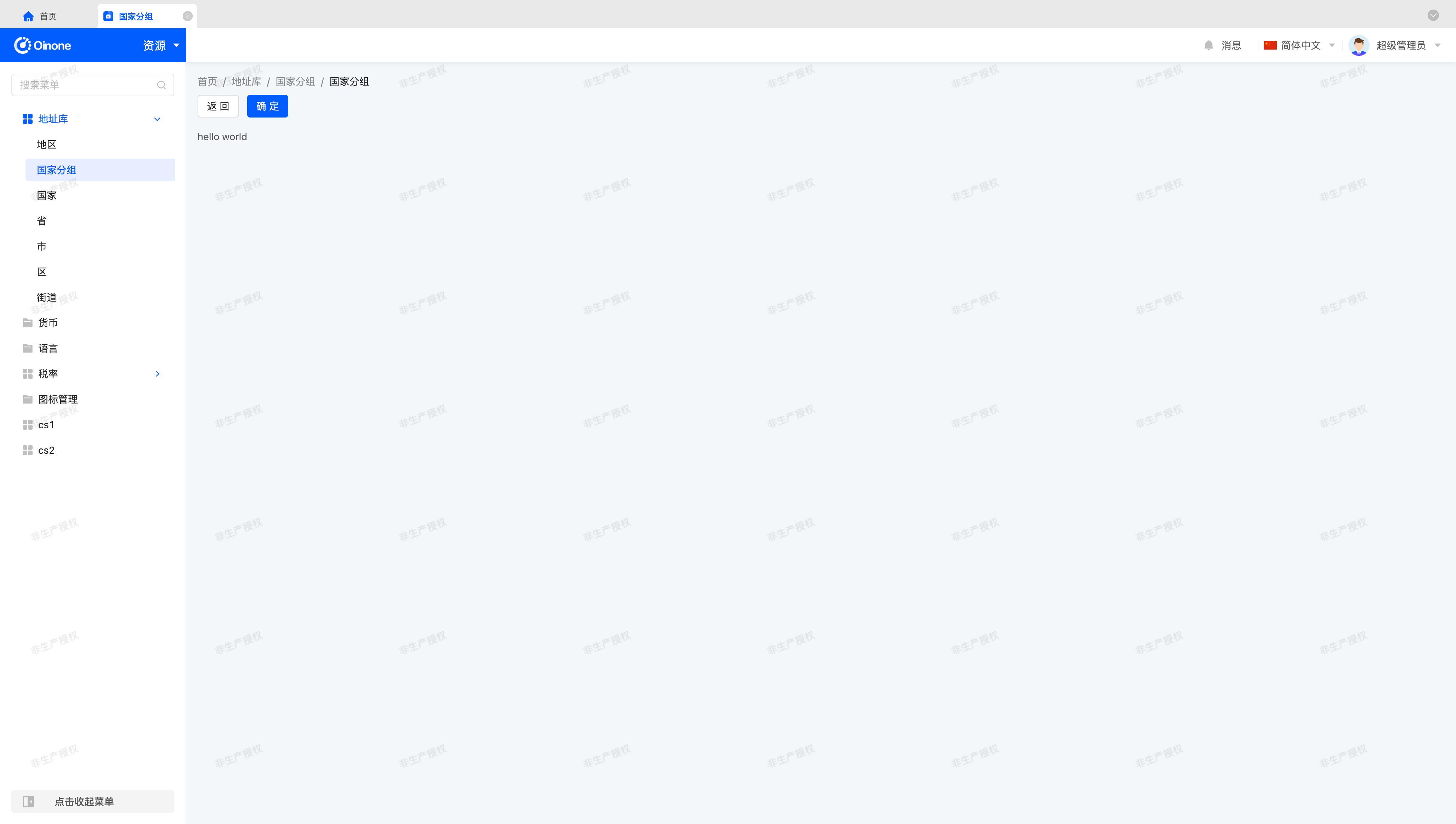 In the following sections, the template for the registerLayout method will no longer be provided. Readers can complete the layout (Layout) registration and component switching by themselves according to the default layout provided in the Layout article. Similar to creating the custom table component above, we first use hello world to see the effect page of component switching: