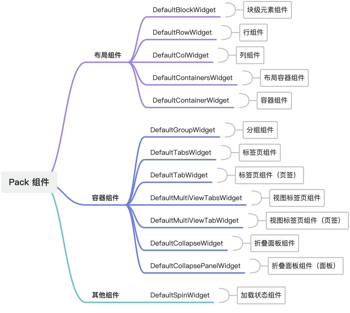 When the widget property is not specified, the component is registered as a default Pack component. Take DefaultGroupWidget as an example: