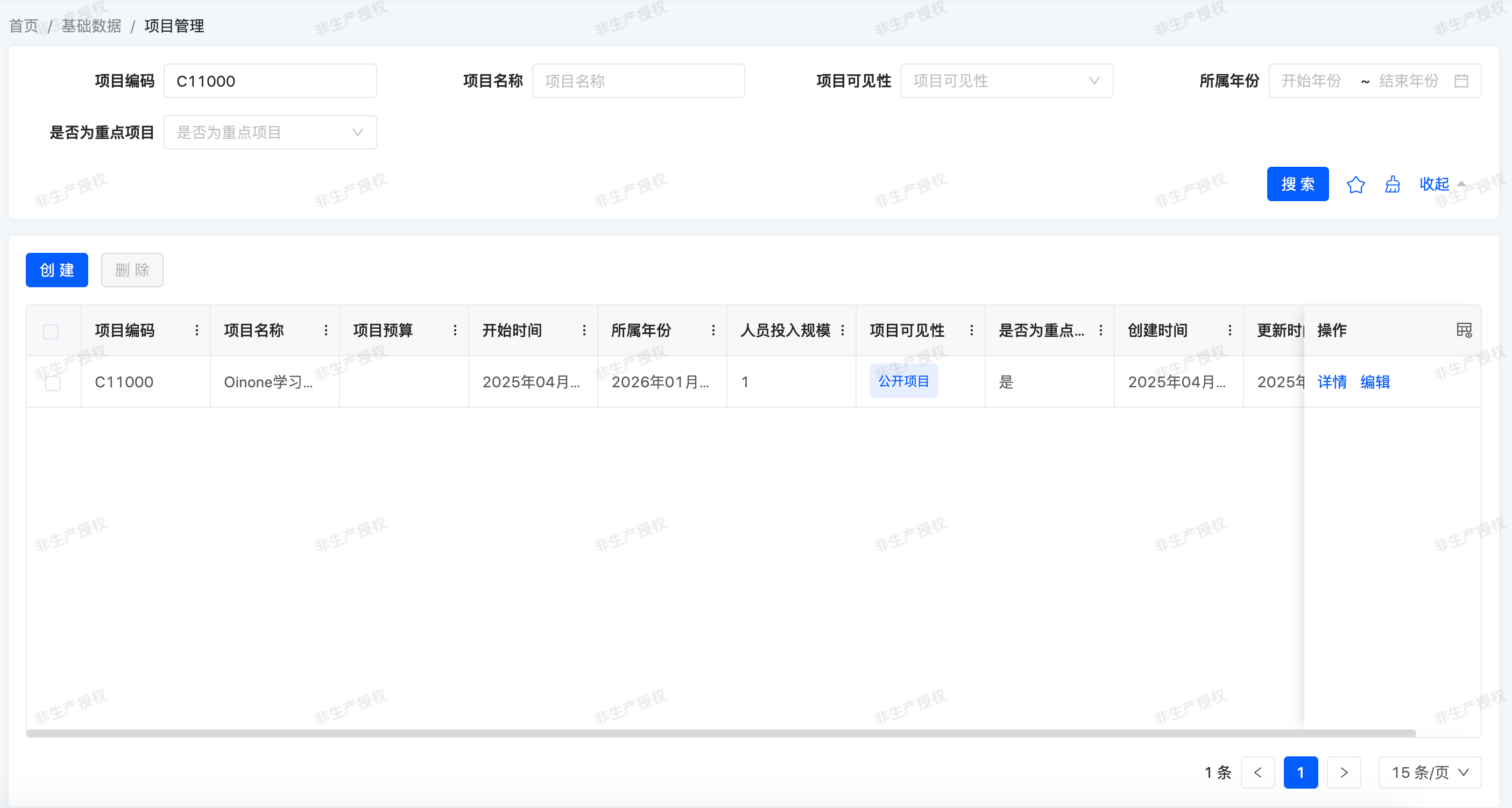 - In table searches, enable filtering based on more fields, specifically providing a filter for "project visibility" and changing code filtering from partial match to exact match.