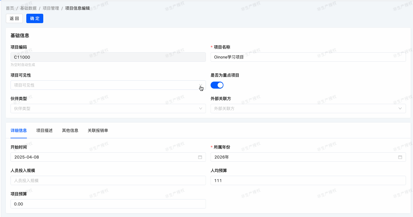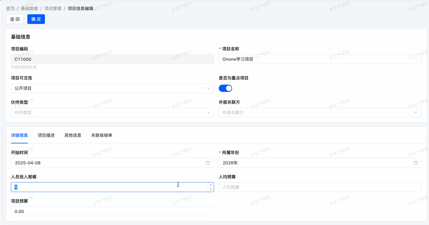 expenses.ProjectInfomodel has been custom-configured. Building on previously acquired knowledge, let's try further modifying and optimizing this form's custom view!