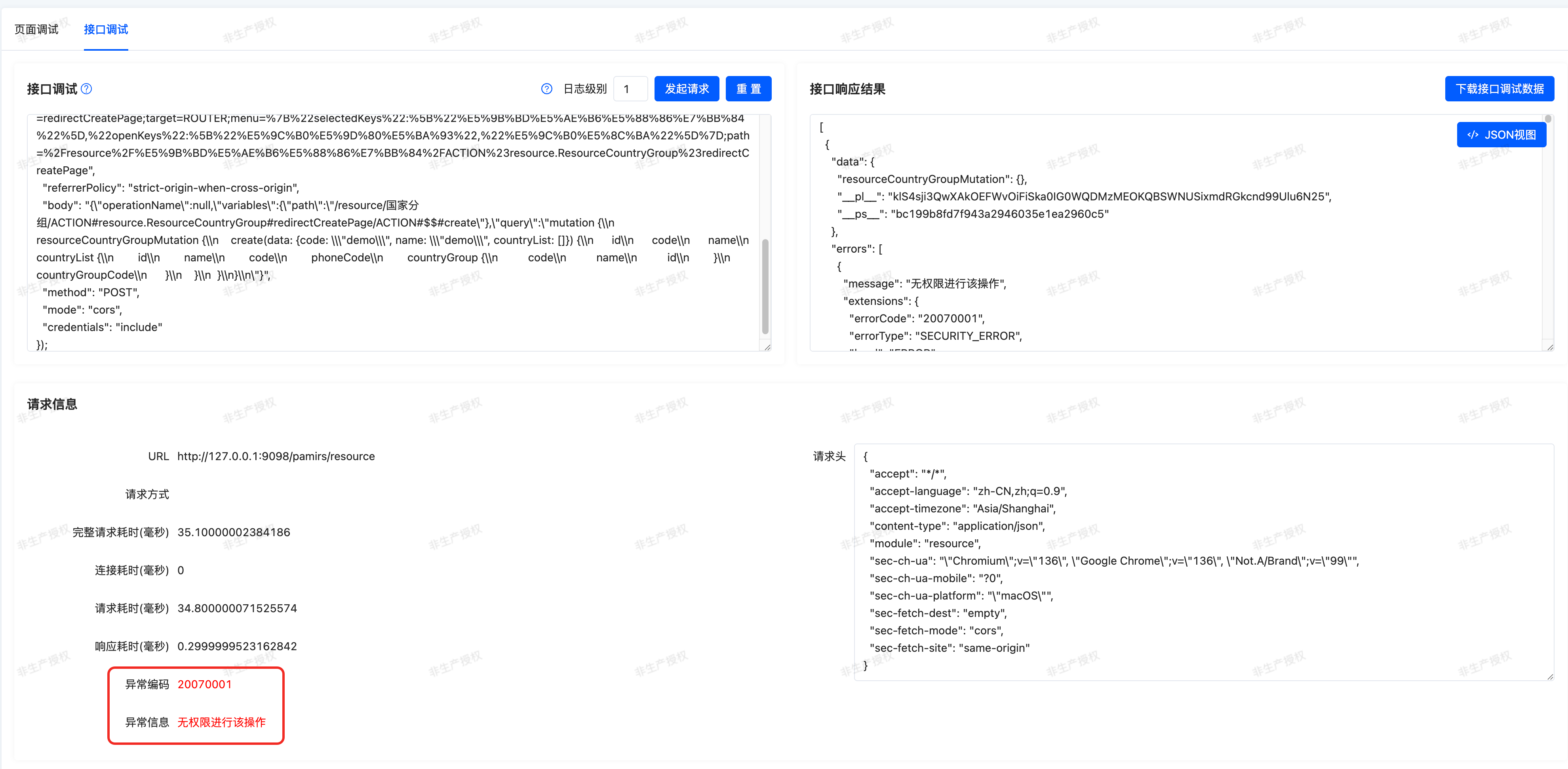 When an interface throws an exception such as "no permission to perform this operation" as shown in the following figure: