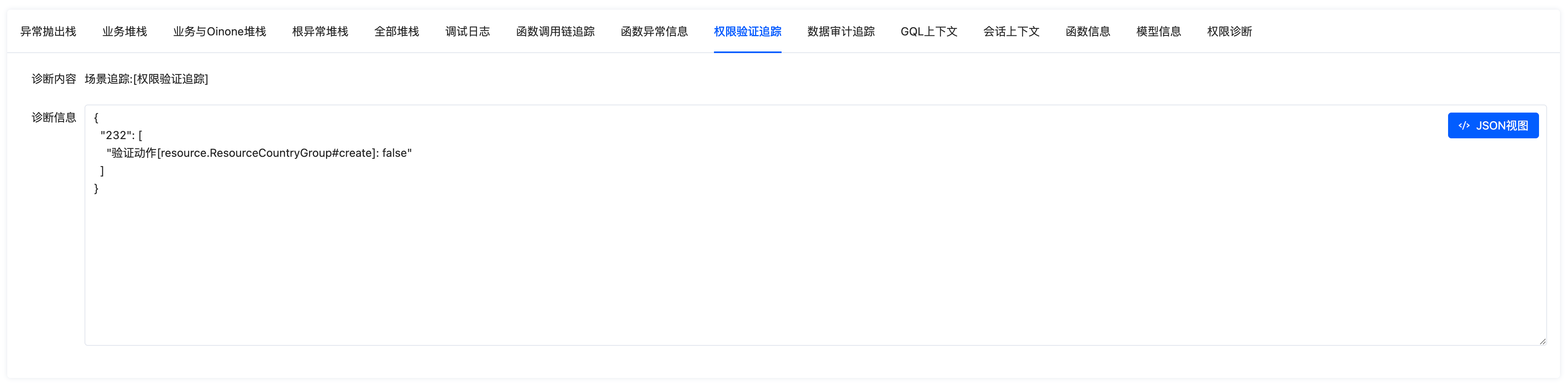 • Action verification: Verify whether the current user can access the specified action. As shown in the figure, false indicates no permission to execute.
