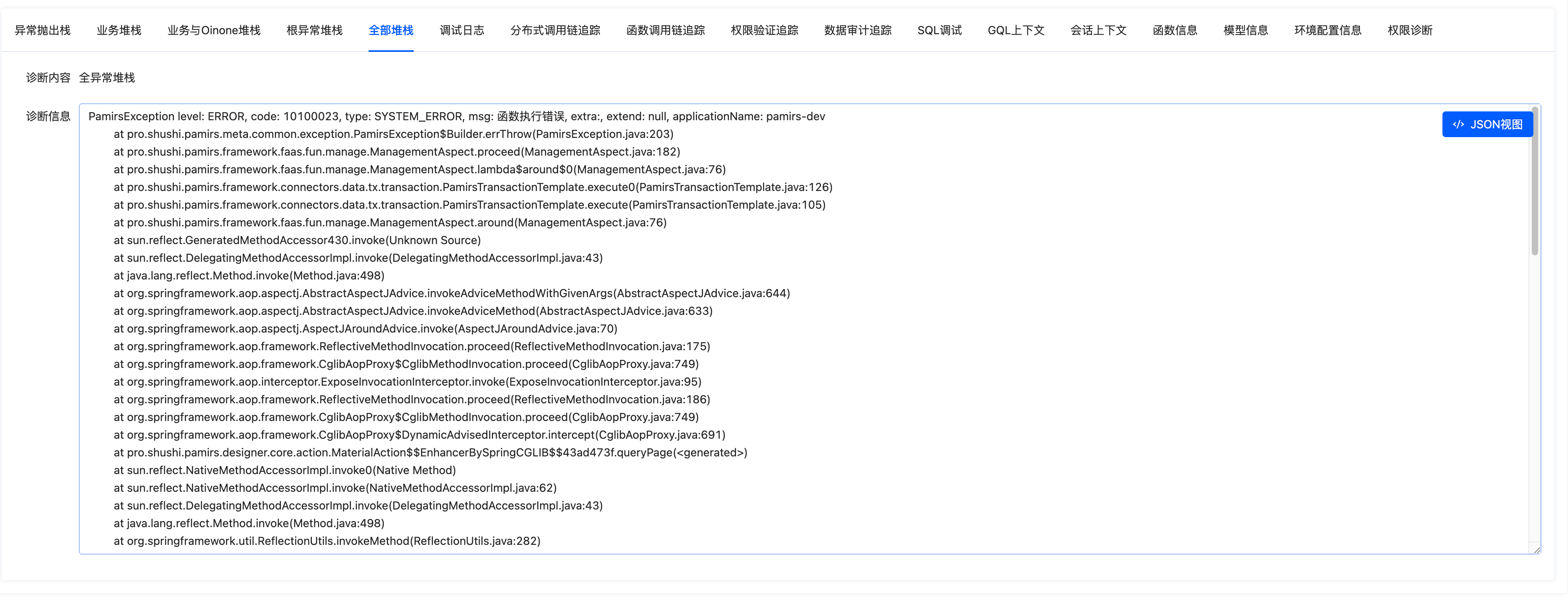 Stack information increases gradually. If viewing the "business stack" still cannot accurately locate the issue, it may be an exception related to the Oinone framework. You can view stack information including the Oinone framework through the "business and Oinone stack":