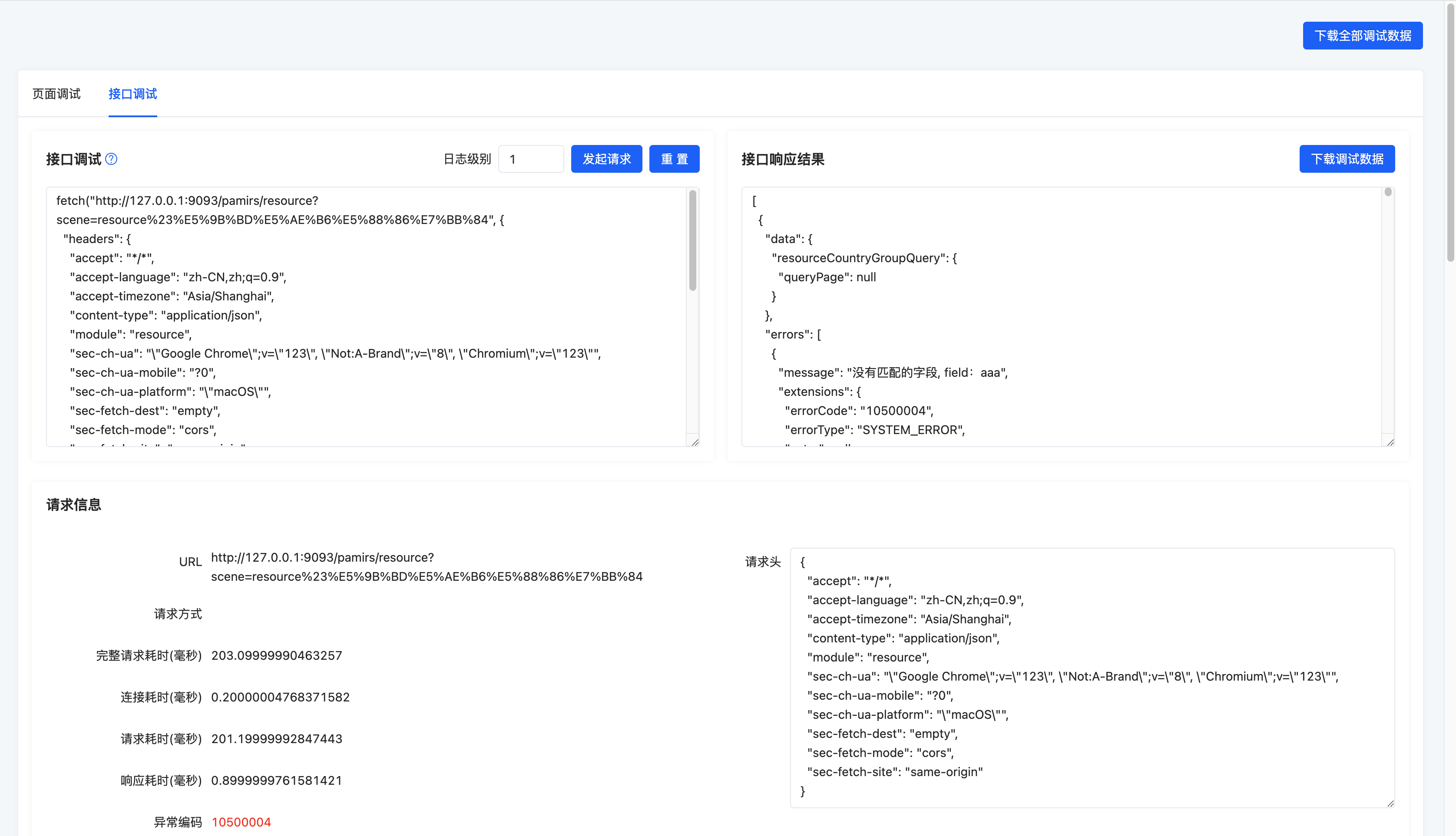 After entering the debug tools page, you will see a page similar to the following: