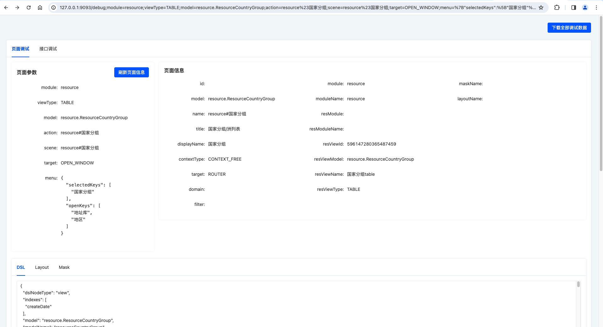 http://127.0.0.1:9093/debug;module=resource;viewType=TABLE;model=resource.ResourceCountryGroup;action=resource%23%E5%9B%BD%E5%AE%B6%E5%88%86%E7%BB%84;scene=resource%23%E5%9B%BD%E5%AE%B6%E5%88%86%E7%BB%84;target=OPEN_WINDOW;menu=%7B%22selectedKeys%22:%5B%22%E5%9B%BD%E5%AE%B6%E5%88%86%E7%BB%84%22%5D,%22openKeys%22:%5B%22%E5%9C%B0%E5%9D%80%E5%BA%93%22,%22%E5%9C%B0%E5%8C%BA%22%5D%7D