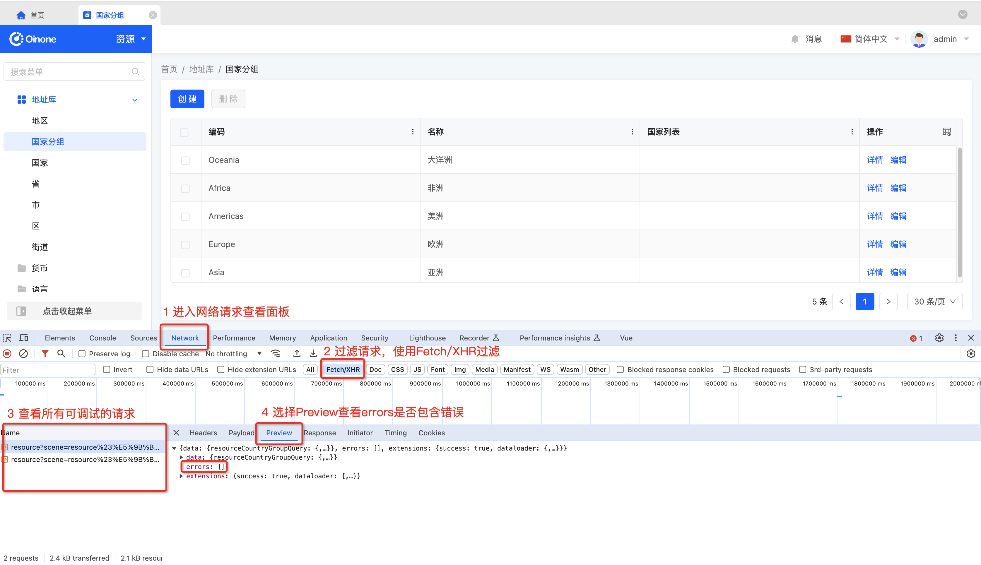 PS: In general, all Oinone requests have an Http status of 200, with error information returned in the errors array.