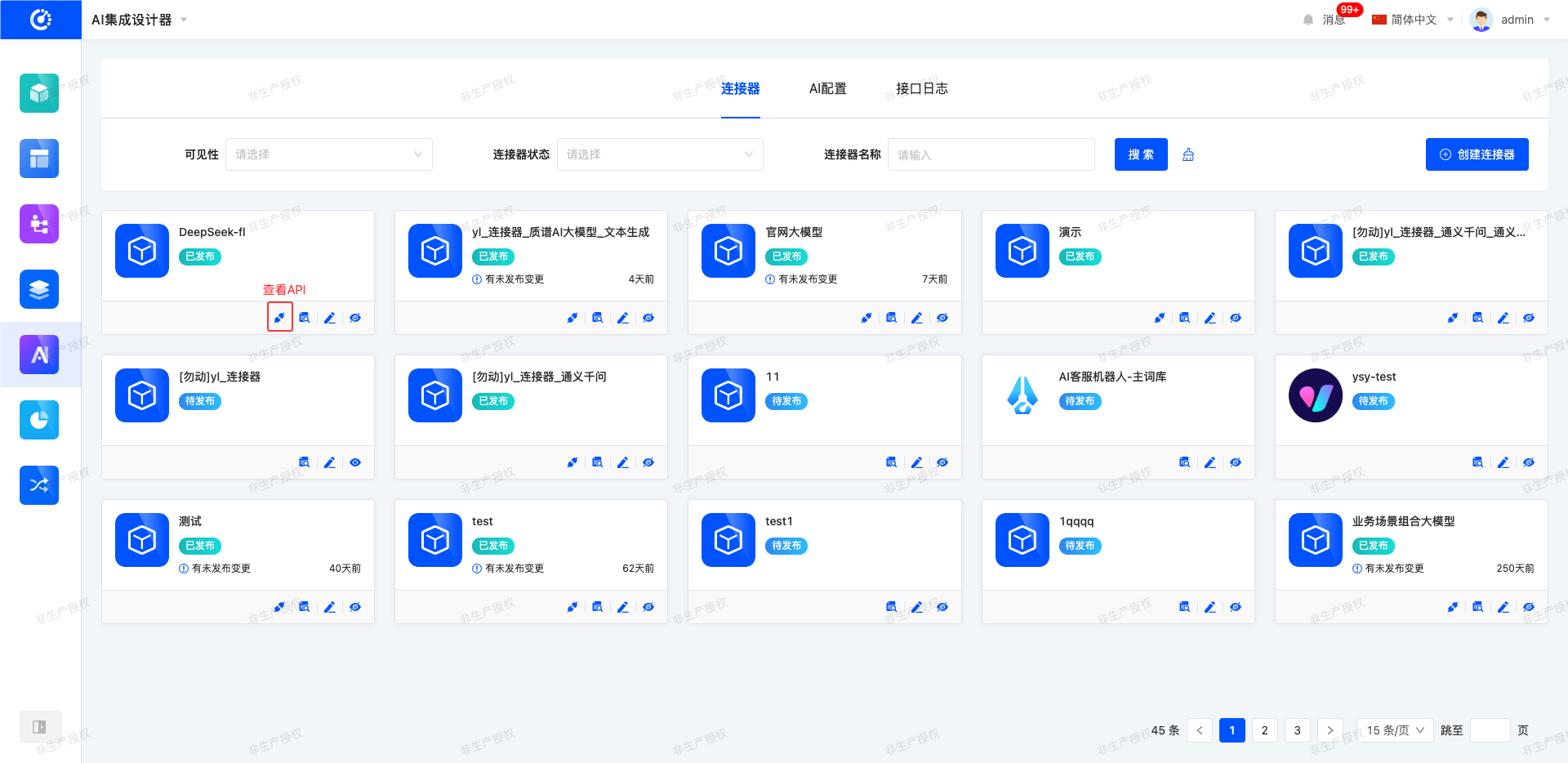 For designed connectors, it supports quickly viewing the connection order of AI configurations and detailed configuration information. For published connectors, in addition to the above content, you can also obtain their API information for easy data docking.