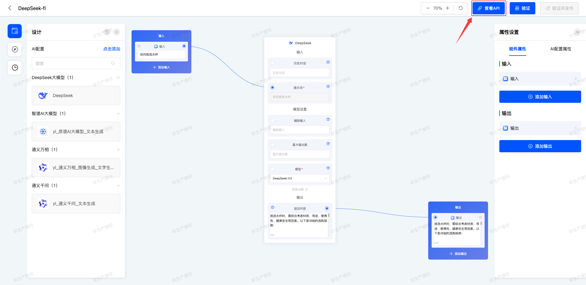 • After the connector is created, it will automatically jump to the design interface. On this interface, you can flexibly configure the input and output types of the connector, freely select the suitable large model, and adjust various configuration parameters of the large model in real-time according to actual business needs to achieve personalized connection settings.