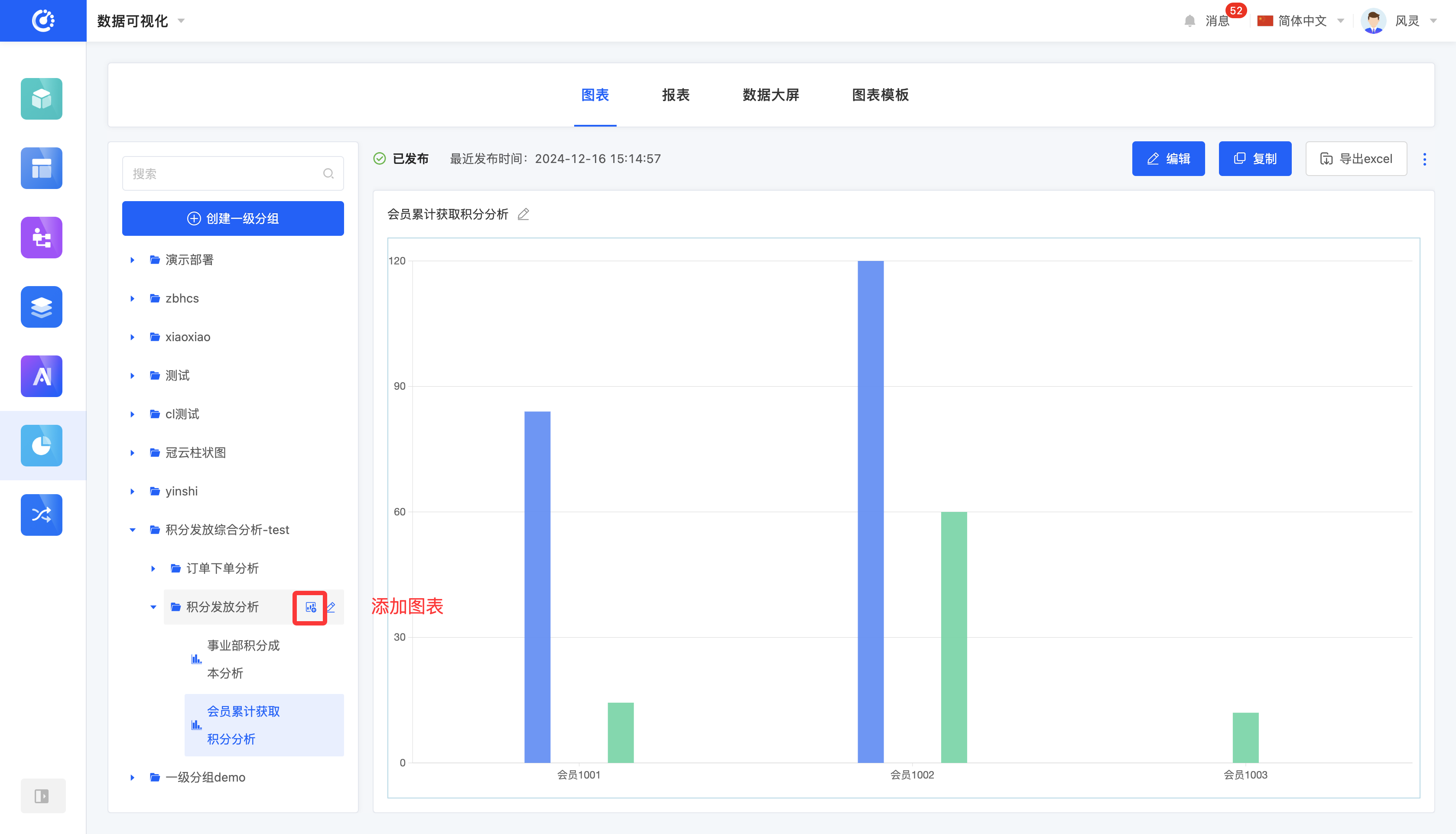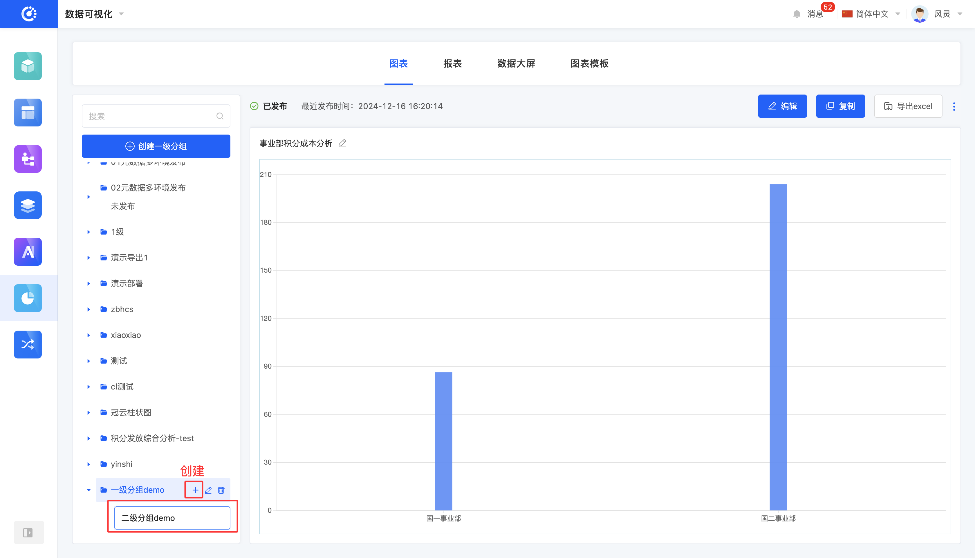 - Click the "Create Chart" icon under the second-level group in the chart list area, enter the chart information, and then you can successfully create the chart.