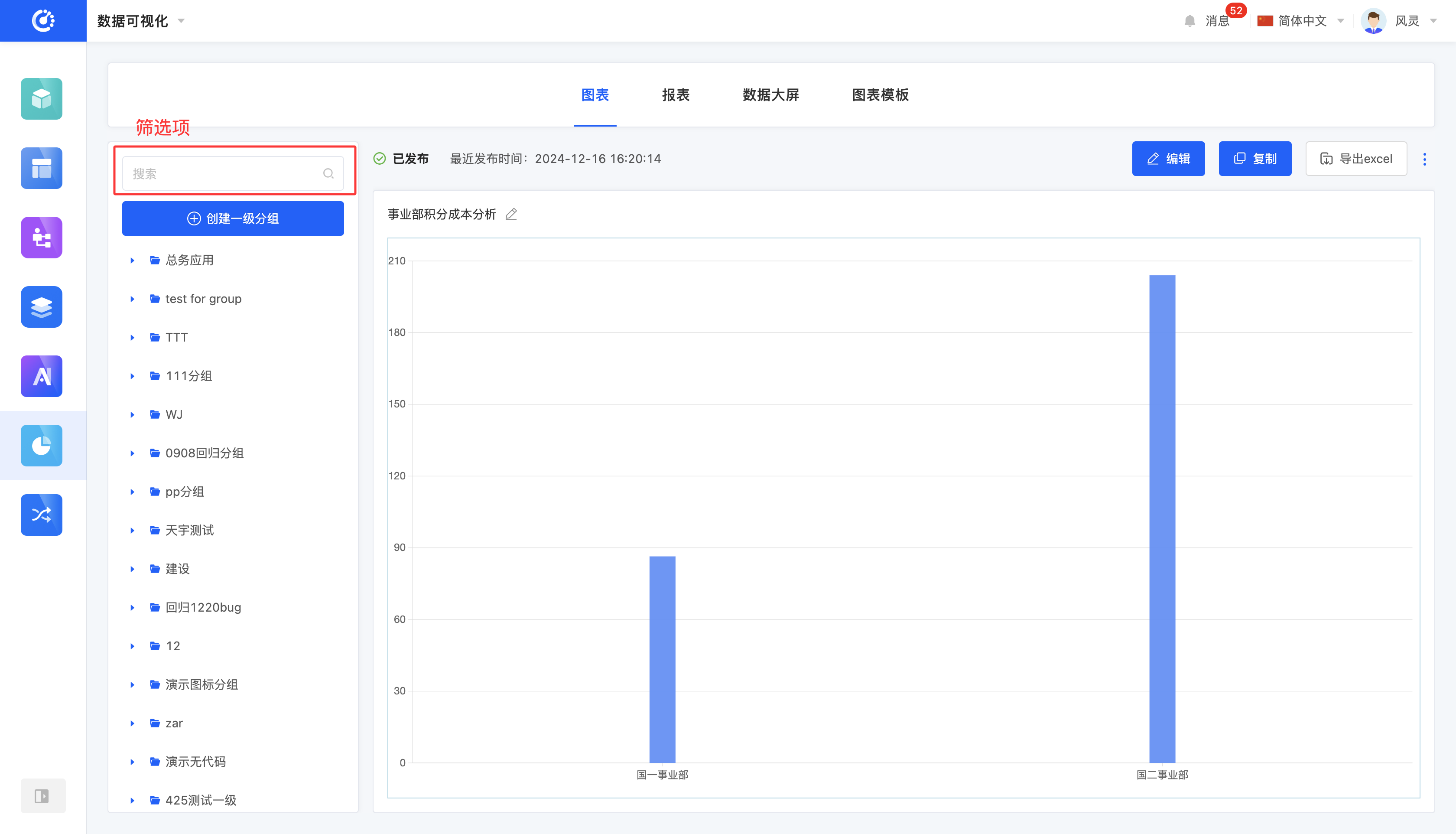 You can customize chart filtering conditions according to actual business needs. After entering the chart or group name, the system can accurately filter the required items for subsequent operations.