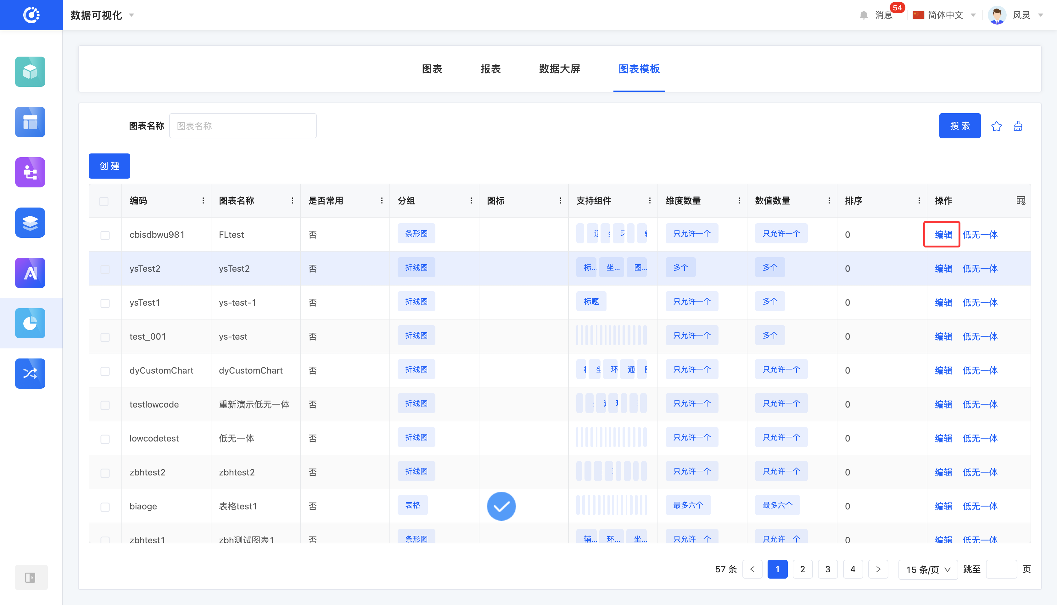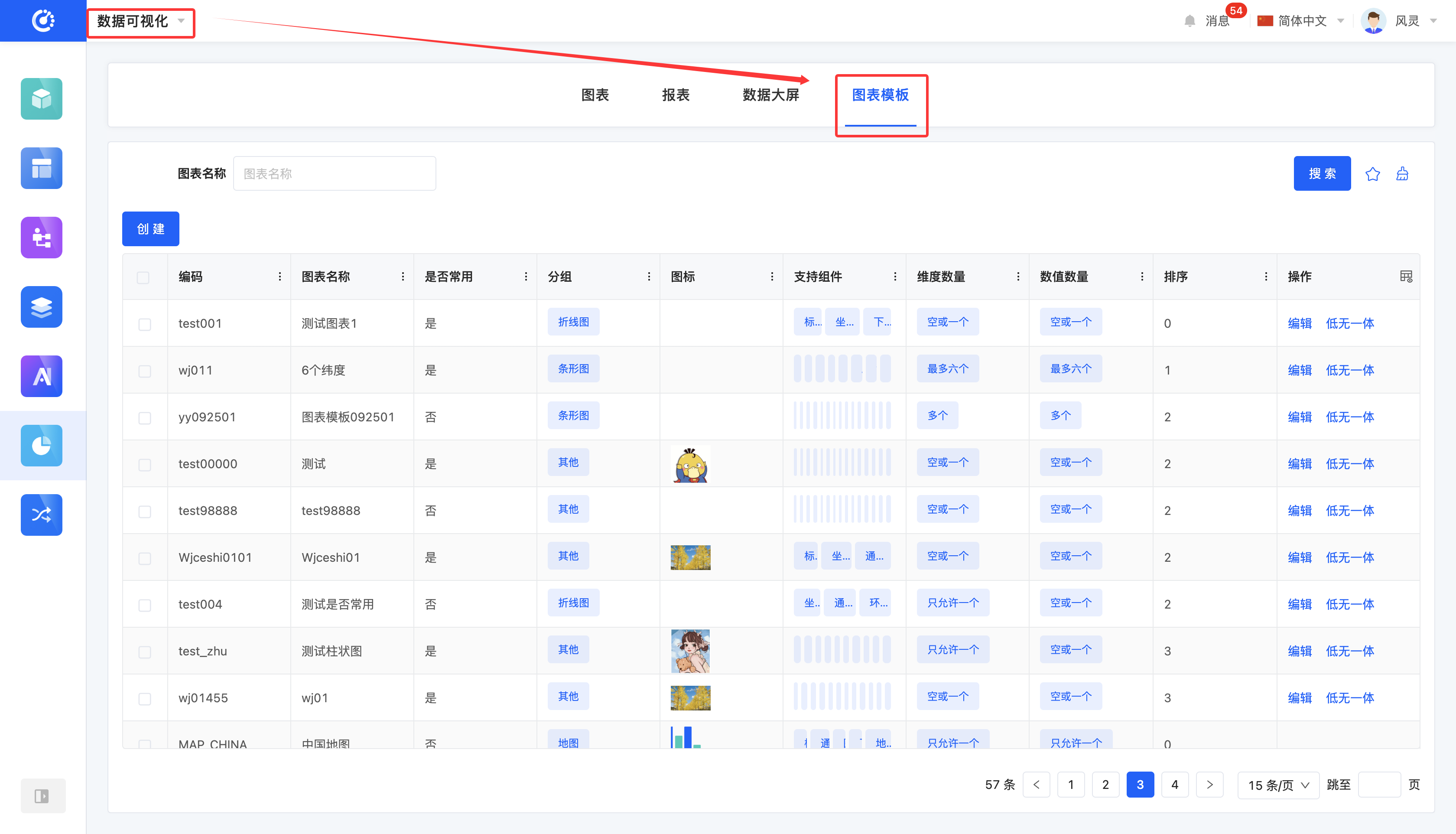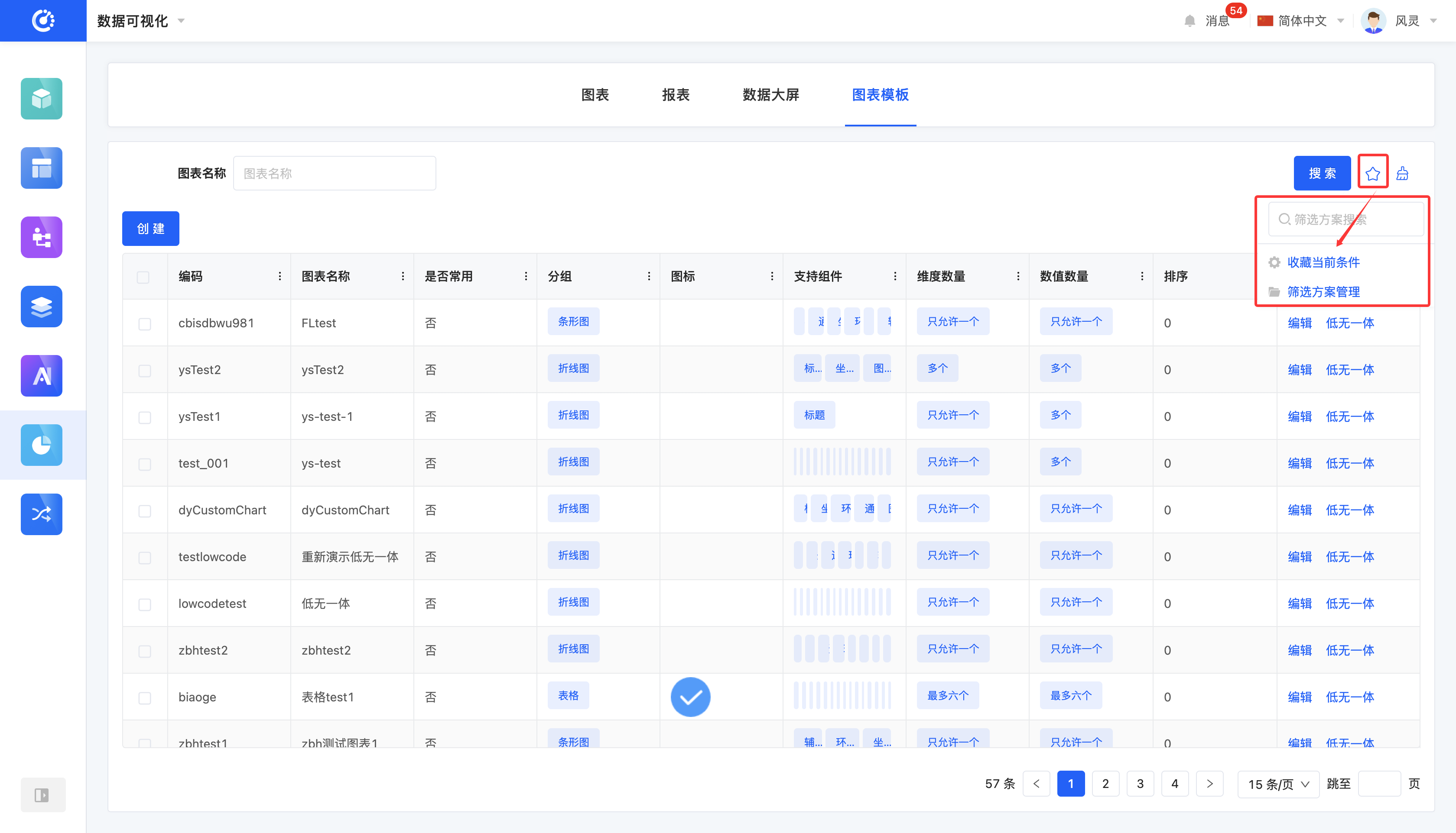 You can customize the filtering conditions for chart templates according to actual business needs. Under the current filtering conditions, the corresponding list of chart templates will be displayed, facilitating the viewing and editing of different chart templates.