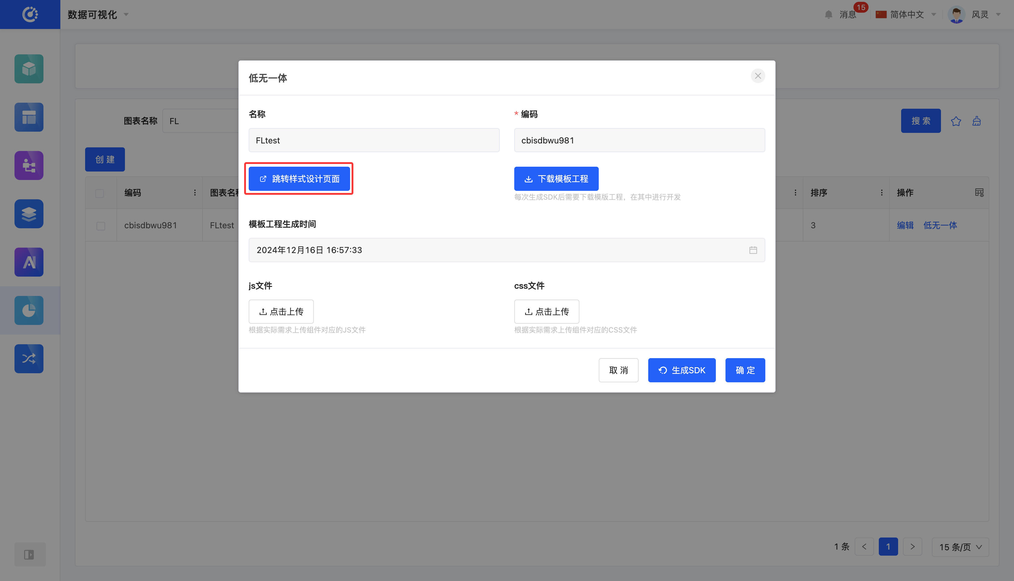 Click "Low-Code and No-Code Integration" - "Go to Style Design Page" to navigate to the interface designer to design the style of the chart template.