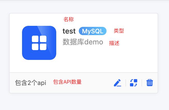 - For databases, click the "New API" button, fill in the information on the pop-up page, and then save to add it successfully.
