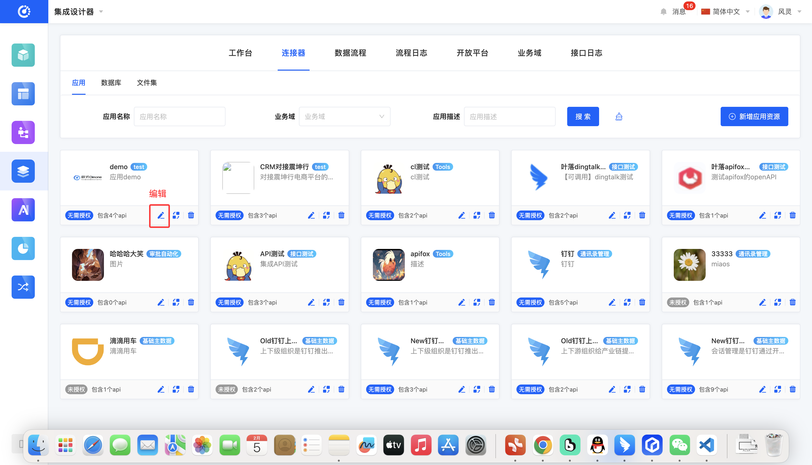 - Application: Icon, name, business domain, description, authorization status, and the number of included APIs.