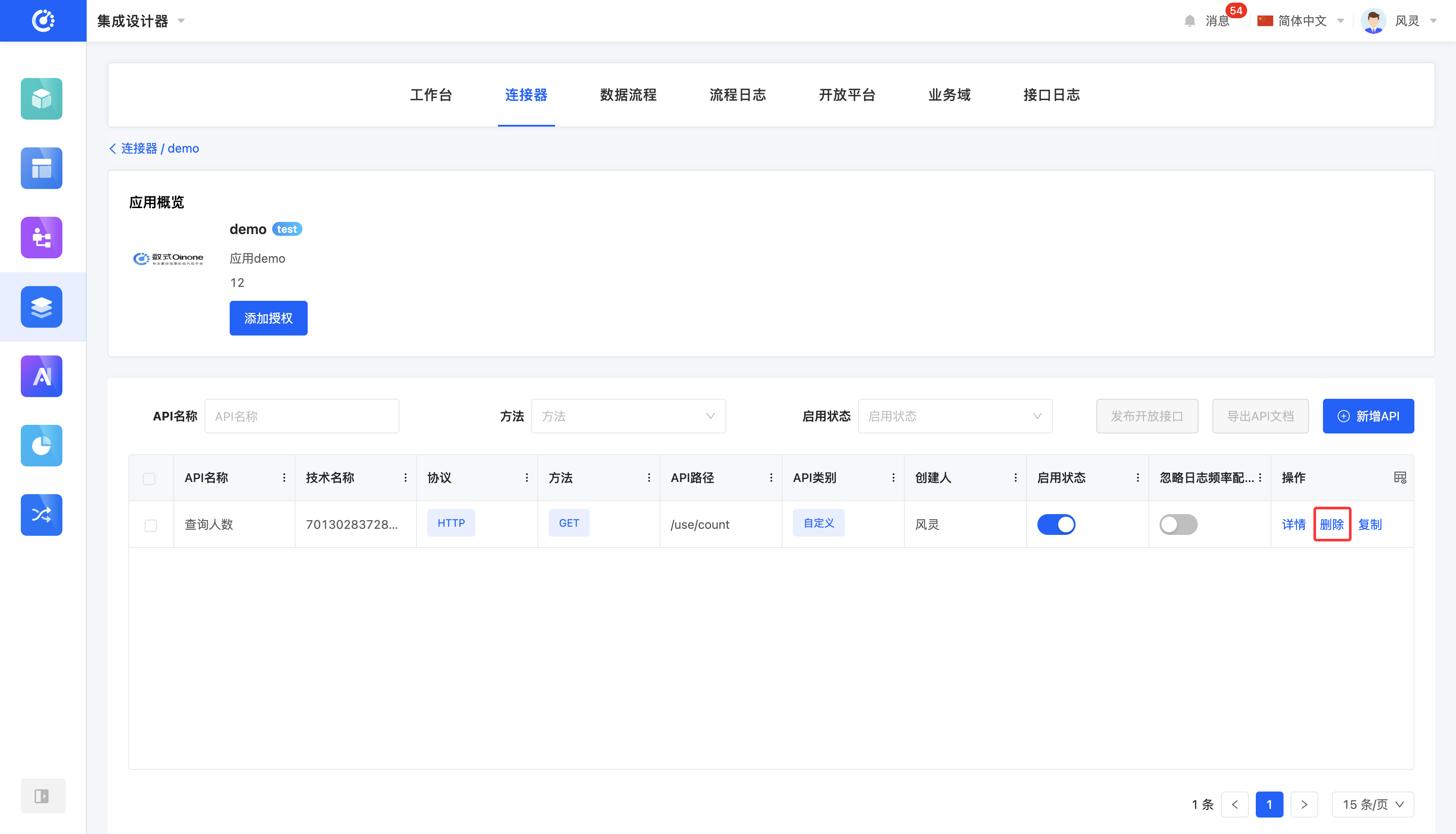 Once an API is deleted, it cannot be recovered. Please operate with caution!