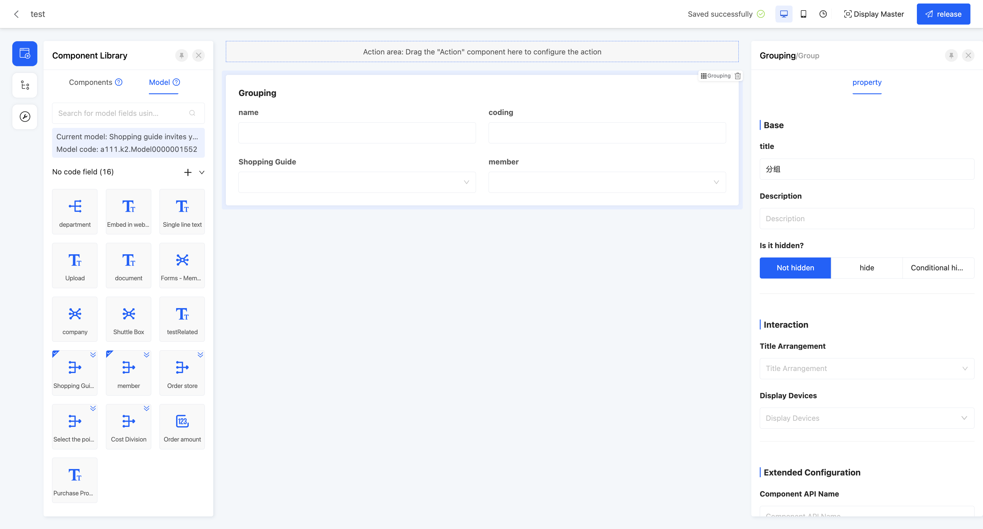 Components with similar business meanings can be grouped together to achieve categorized management and clear presentation of page components.