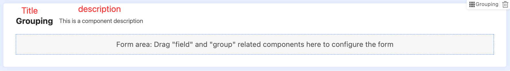 • Description: Used to describe the component information. The description of the grouping is on the left side of the title.