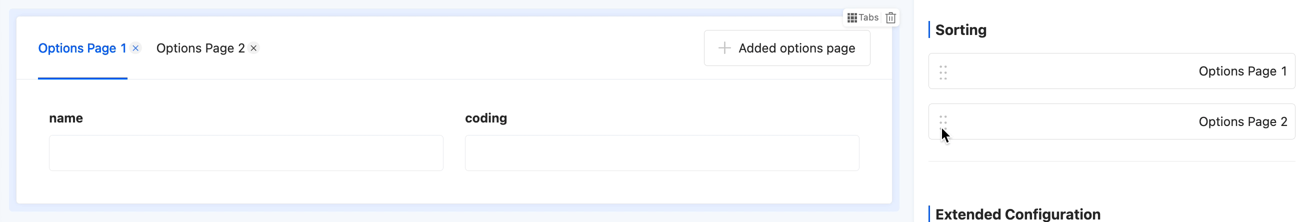 • Sorting: Supports dragging tab pages to change their positions.