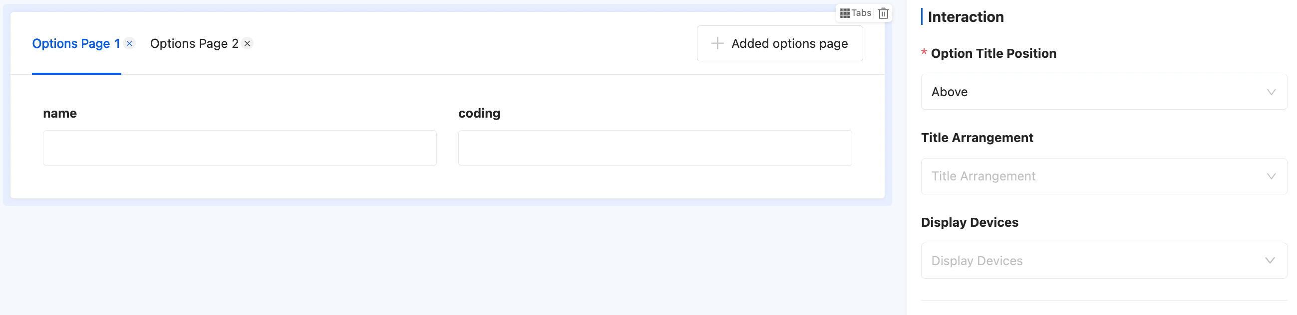 • Tab Title Position: Supports two positions: top or left.