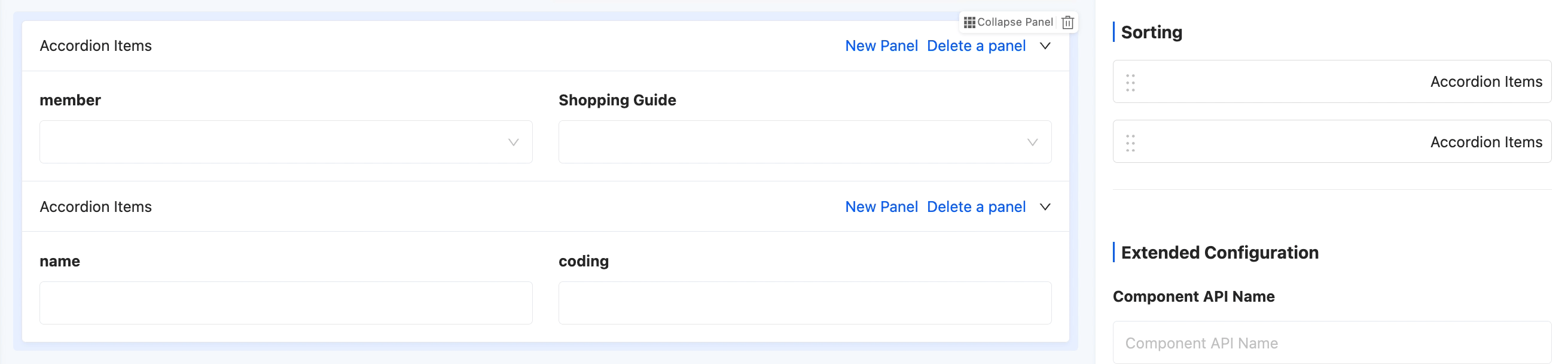 • Accordion Mode: When this mode is enabled, if there are multiple collapsible panel items, only one item can be expanded at a time. When trying to expand another panel item, the currently open panel item will automatically collapse.