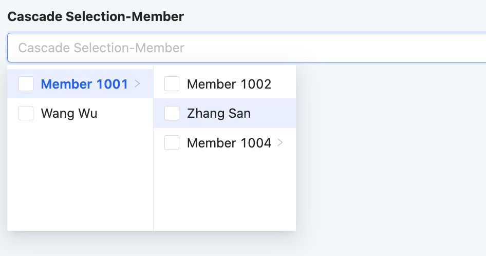 Cascader Selection and Tree Selection actually have the same function for business scenarios but have different interaction experiences.