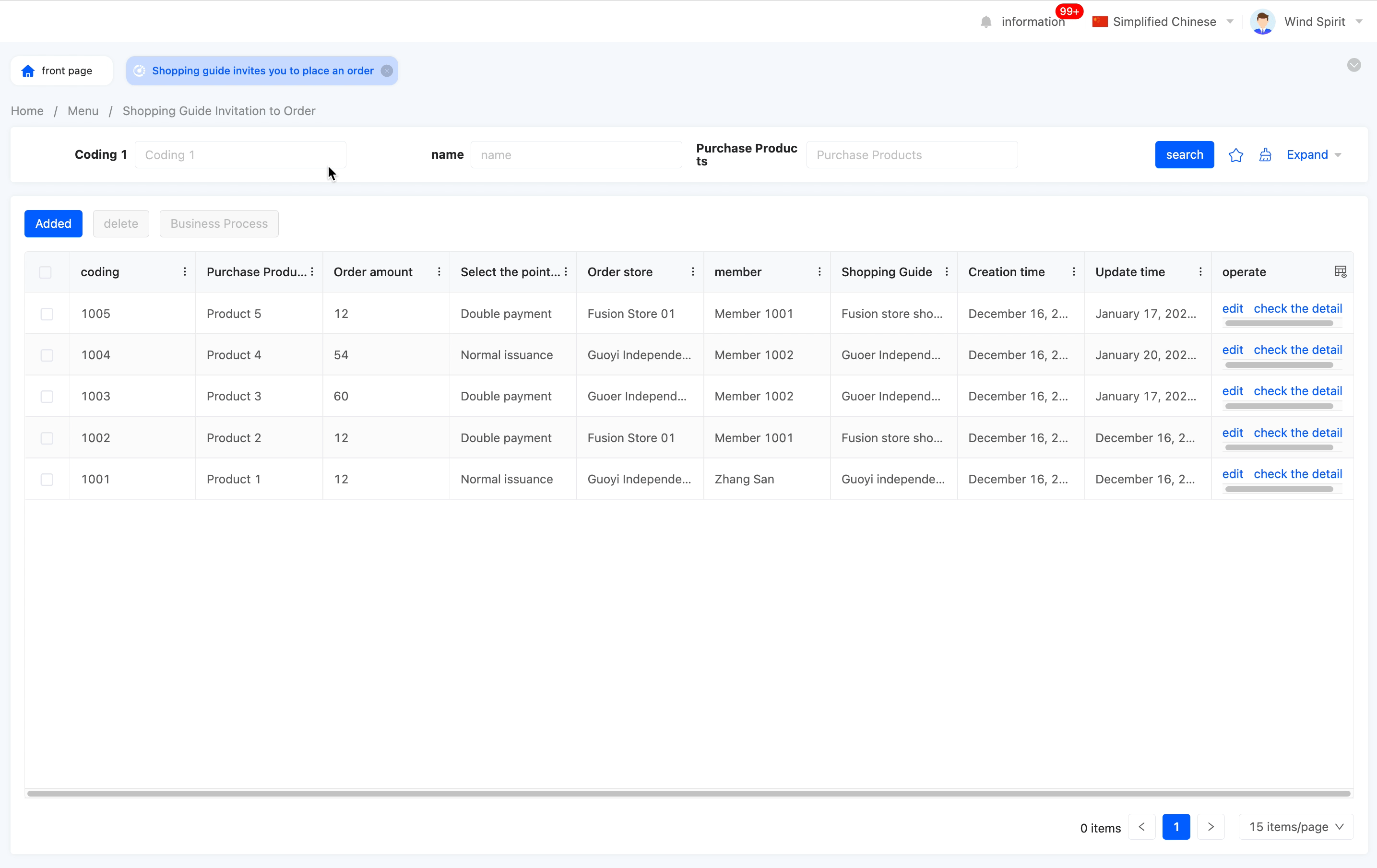 - The four actions of Business Process, Import, Export, and Log Record will only be displayed on the page if the application where the page is located has depended on the corresponding application or module.