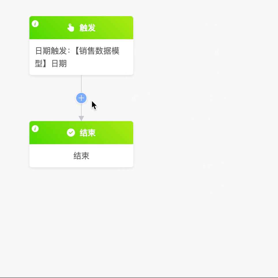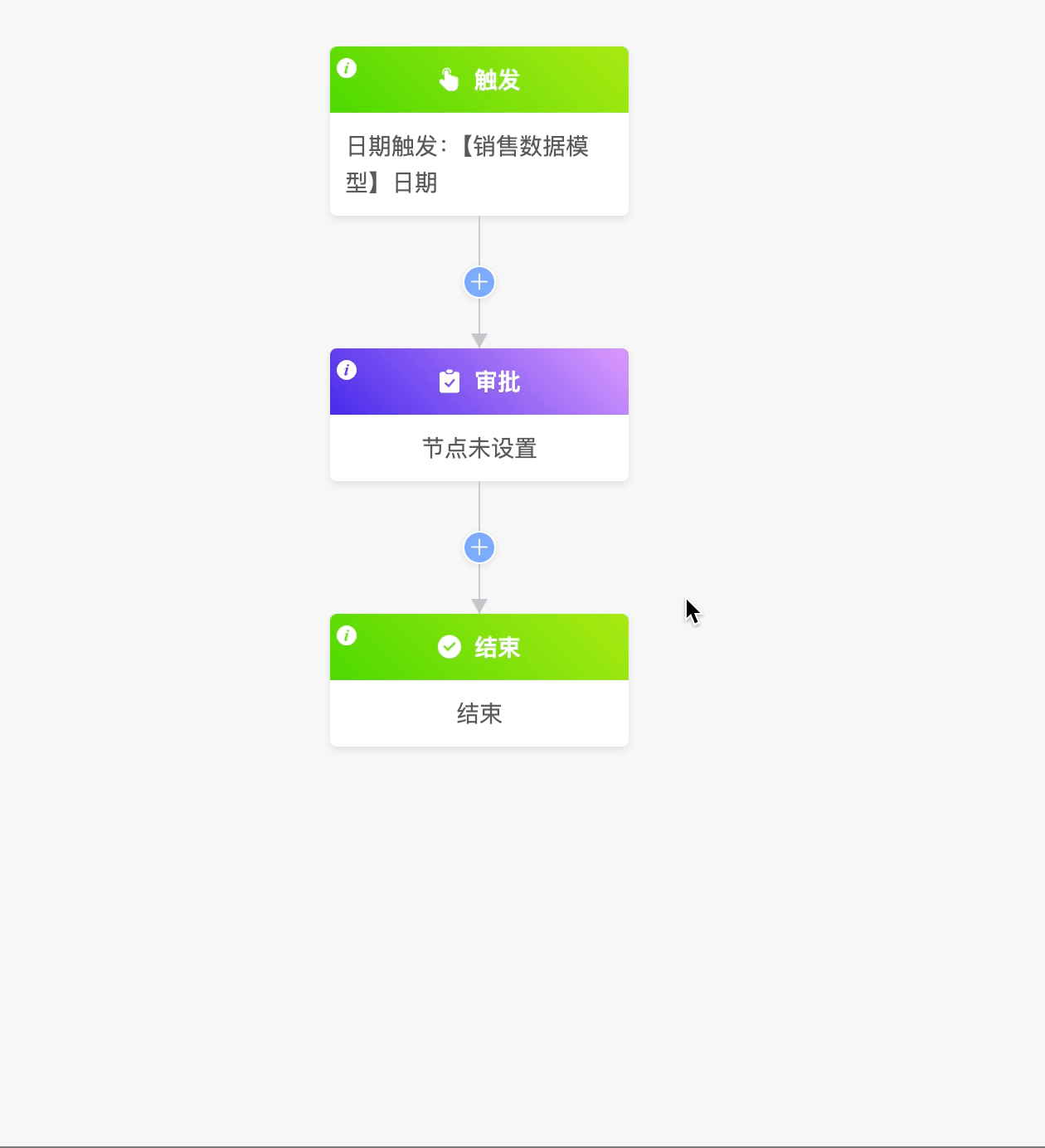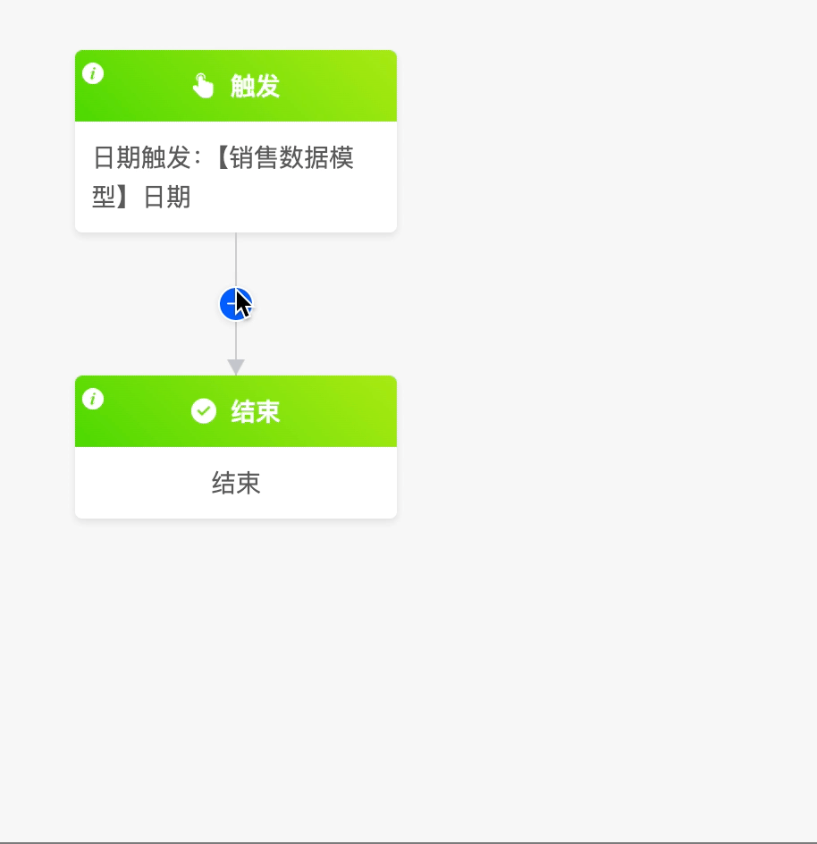 The newly added process design page by default includes two core nodes: one is the process trigger node, used to define the conditions for starting the process; the other is the process end node, used to mark the termination of the process.