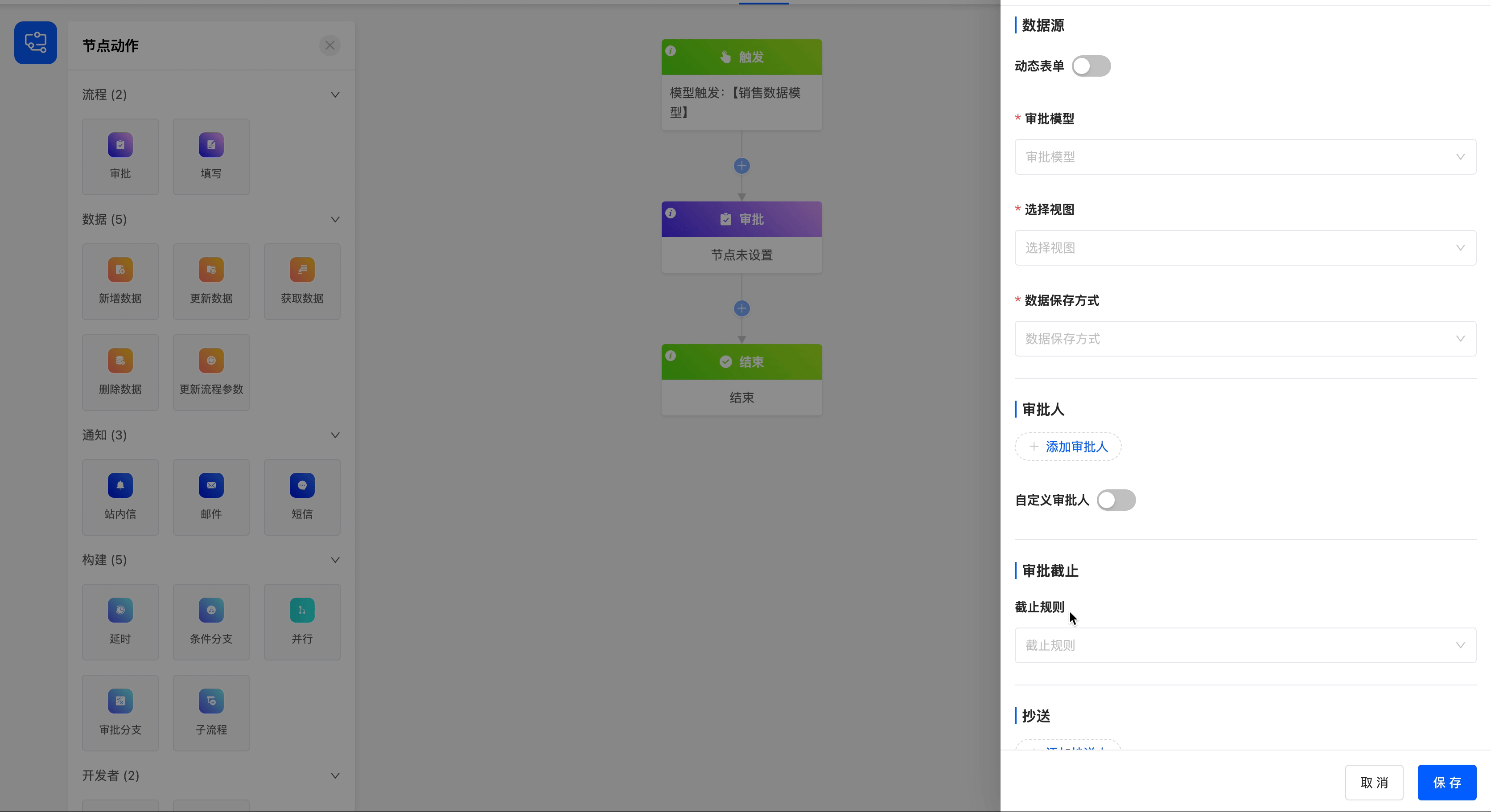 - Add Approvers: You can select from personal, department, role, and model - related fields, and multiple selections are allowed.