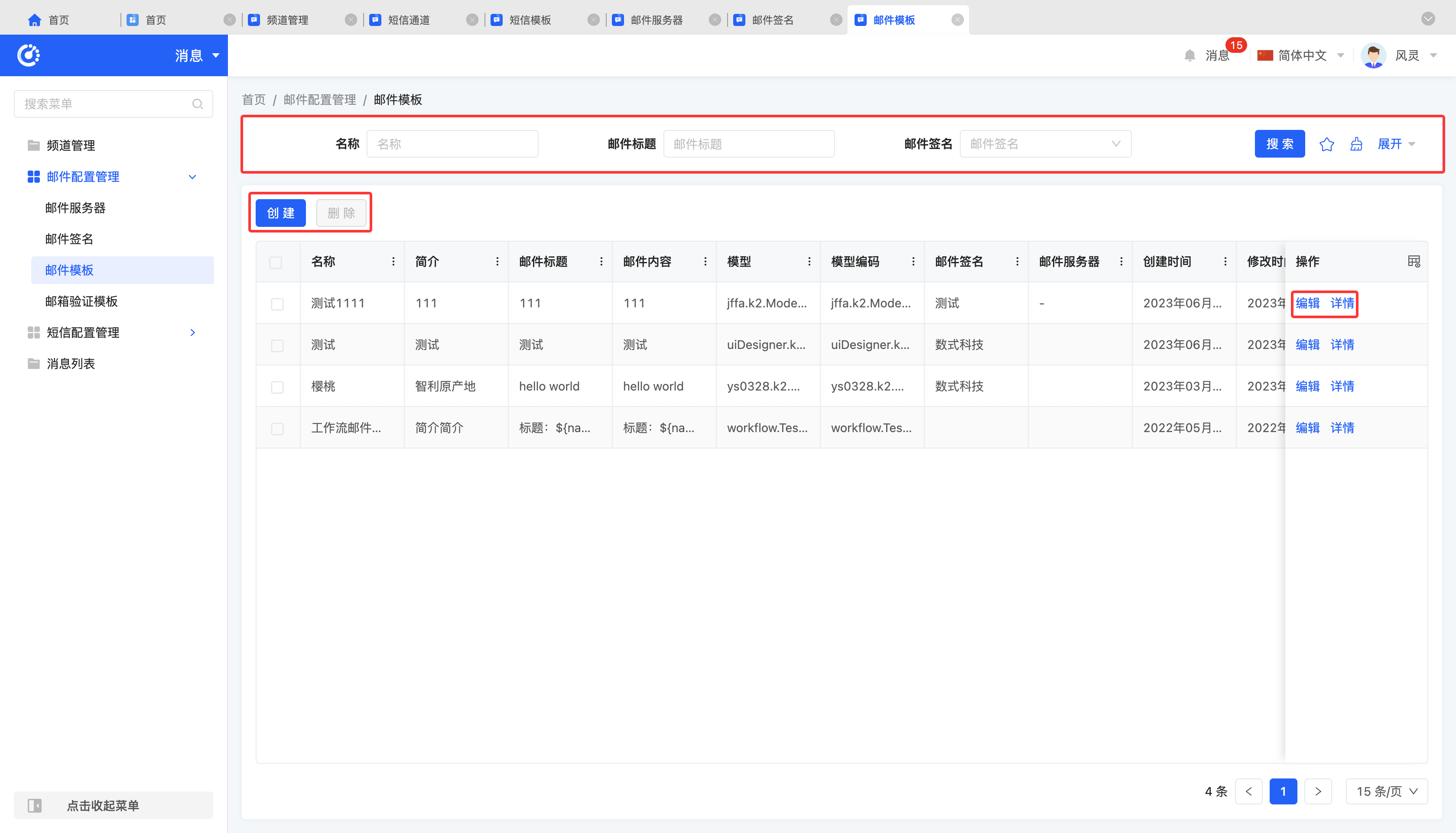 • Add: Click "Create", enter the required configuration information and save to successfully create a new email template.
