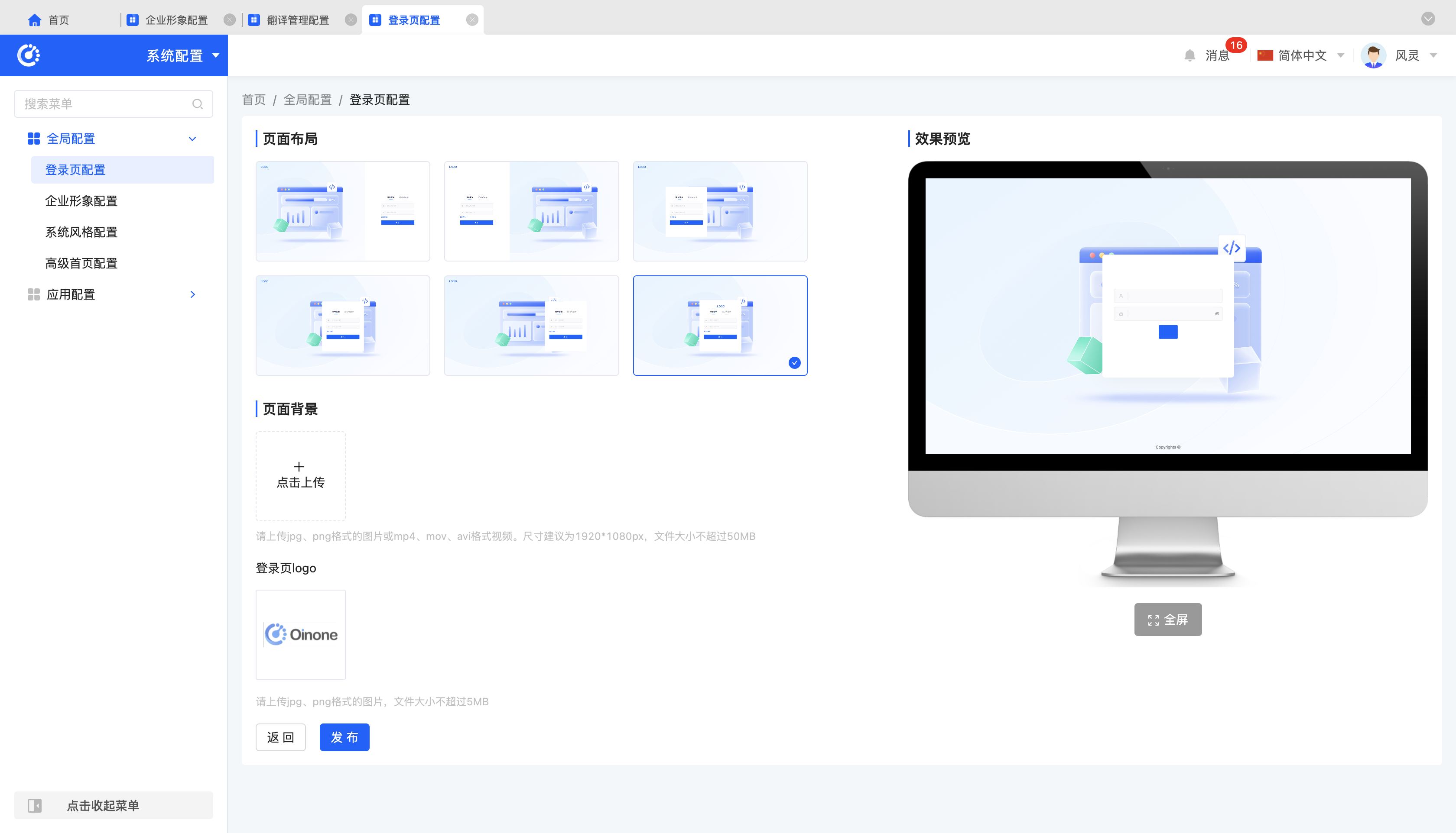 The login page supports personalized customization, offering a variety of page layout options. Enterprises can customize the page background and the logo on the login page according to their cultural characteristics. During the setting process, you can preview the configuration effects in real-time, making customization more intuitive and convenient.
