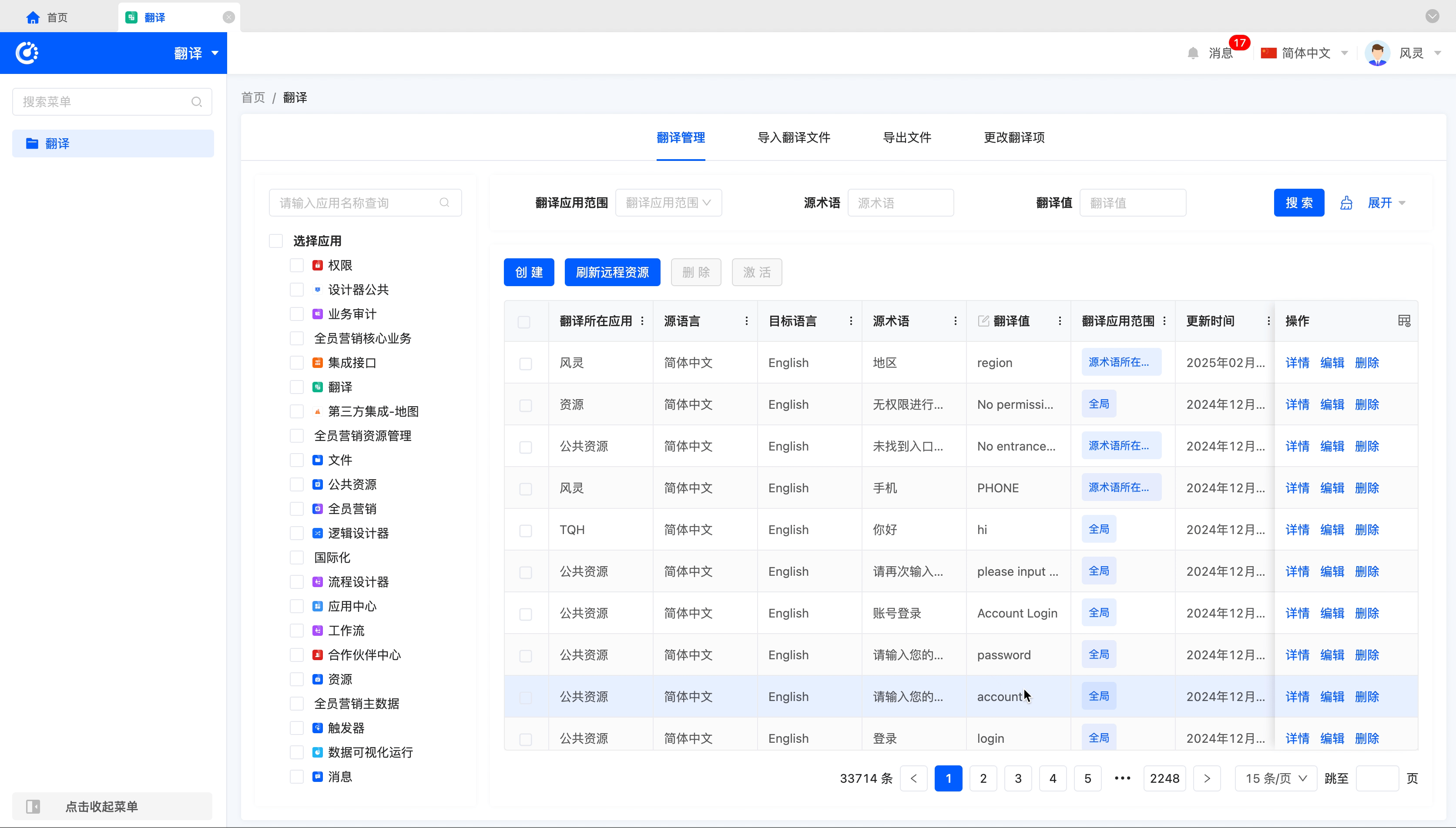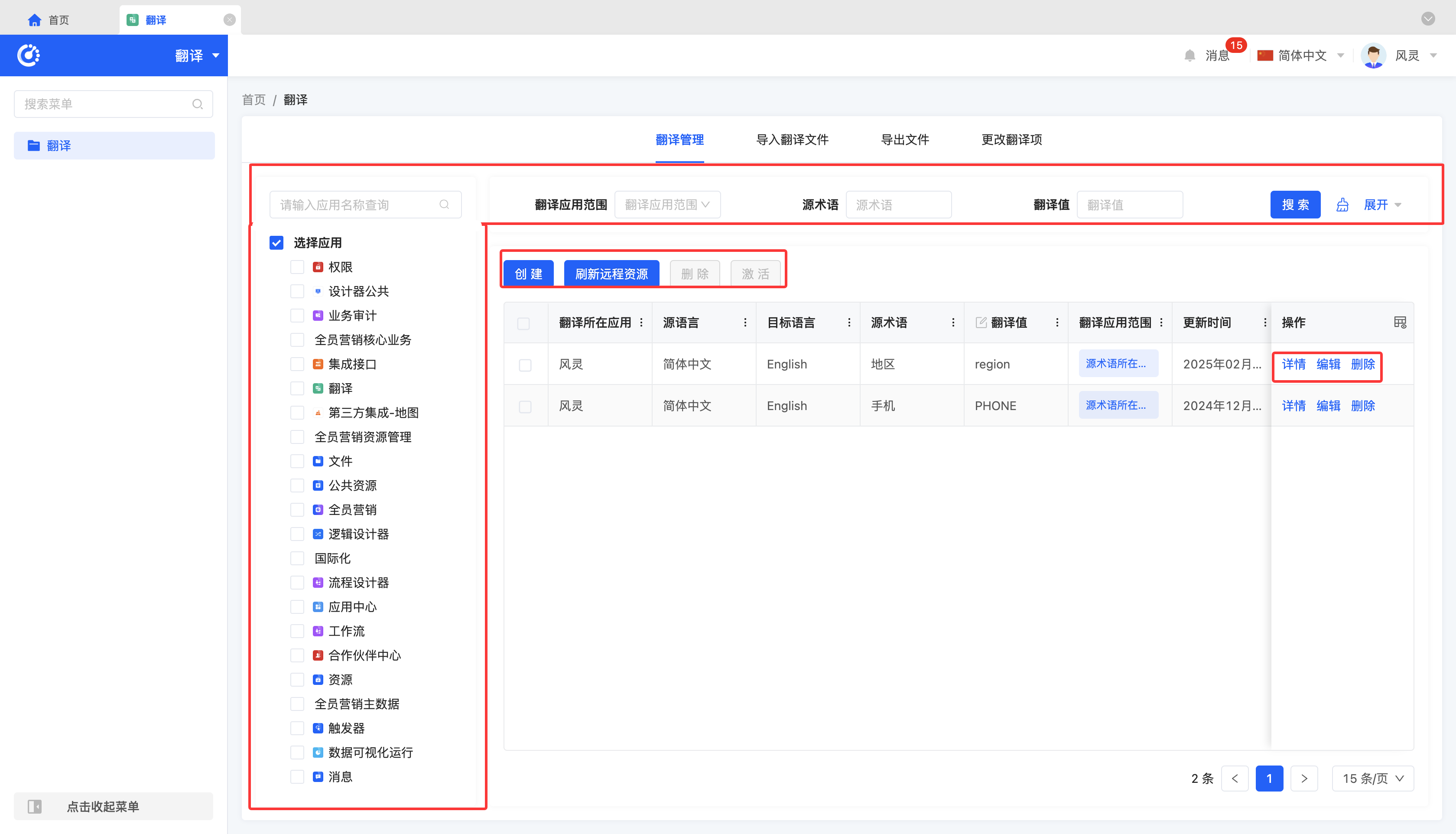 - Filtering: According to the requirements of the actual scenario, input or select the corresponding filtering conditions to filter the translation items.