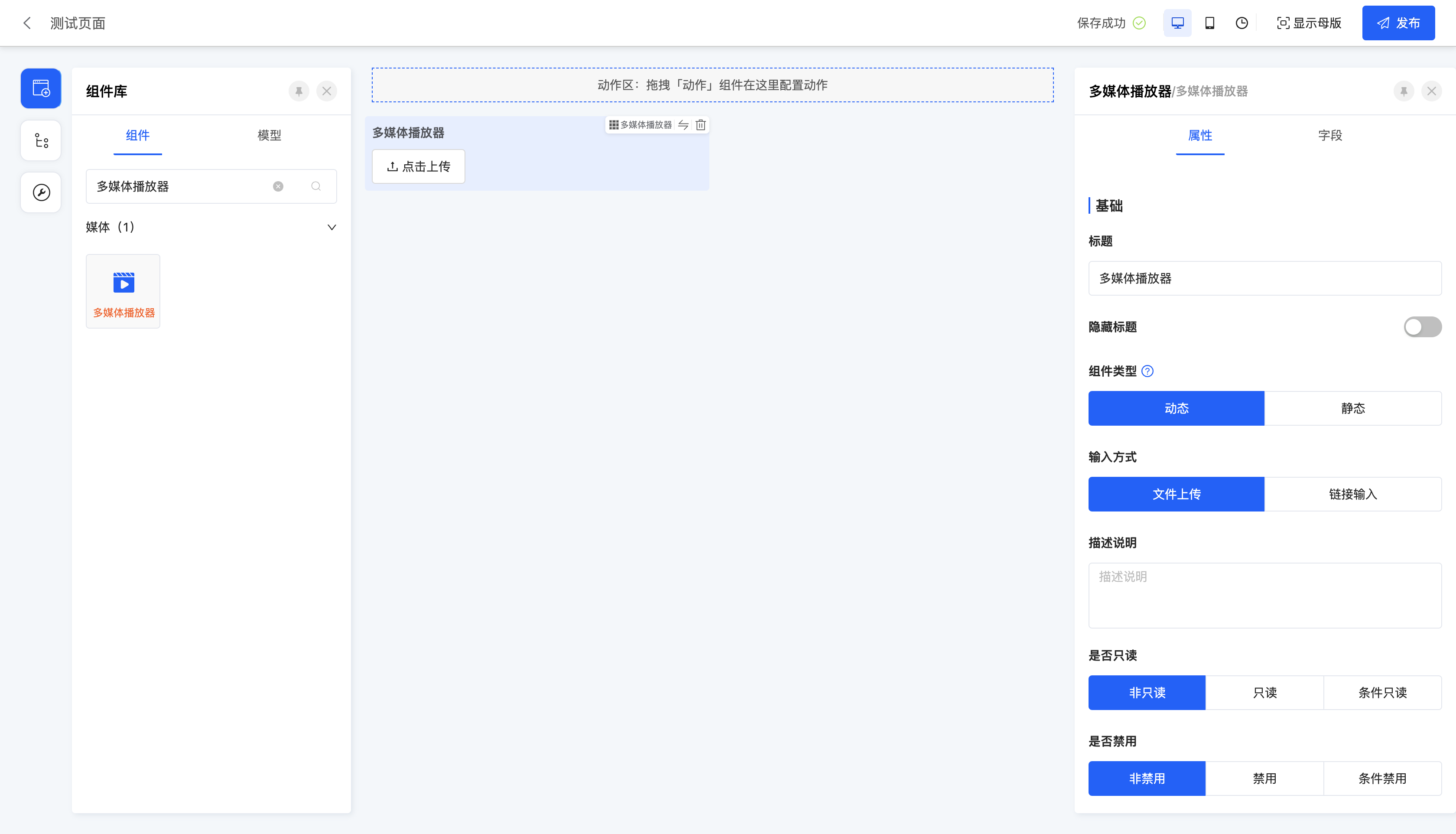 支持在页面中嵌入多媒体播放器,适用于查看图片、视频等场景。