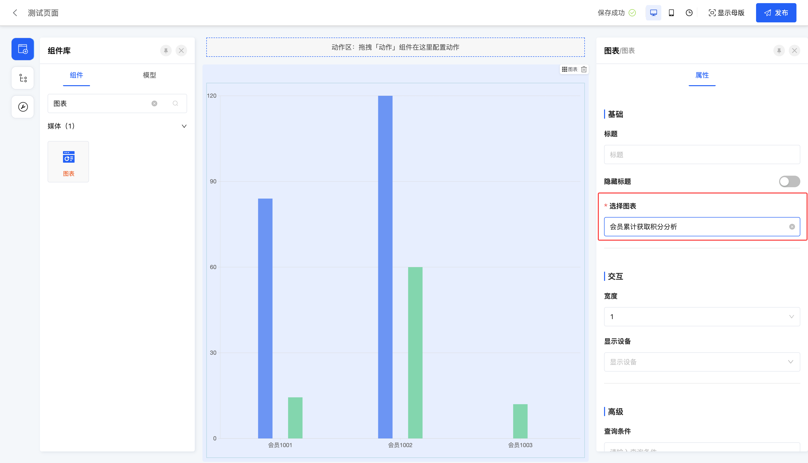 - 选择图表:可选择在数据可视化中已发布的图表。